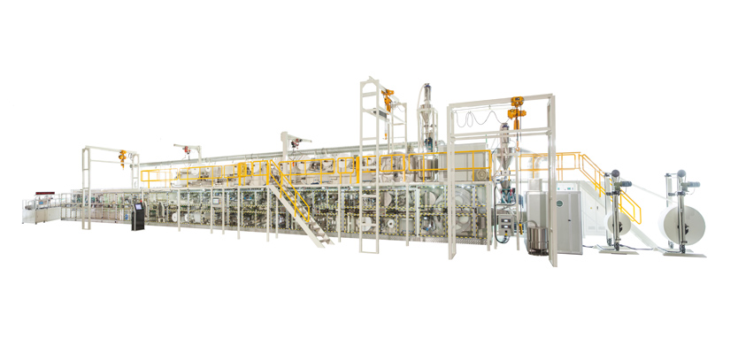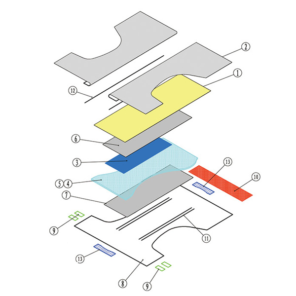 基本生產工藝配置: 高速粉粹機(可使用未處理漿) 棉成型機構I 棉成型機構I 高分子下料機構I 高分子下料機構II 材料供給機構 弧切組合刀具 縱向折疊機構 終切組合刀具 橫向折疊機構 供氣機構 安全防護機構 |